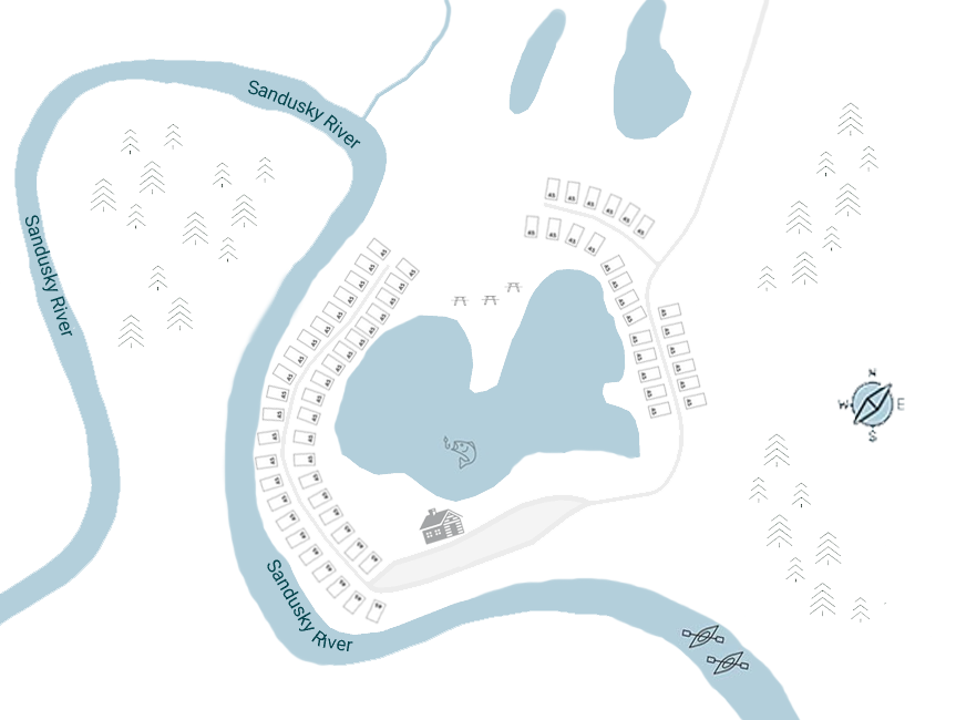 Sandusky River Retreat contains 50 Acres with Hiking Trails, 6 Acre Lake and outdoor activities for with a fun Family Atmosphere. Locally Owned Onsite Owners.